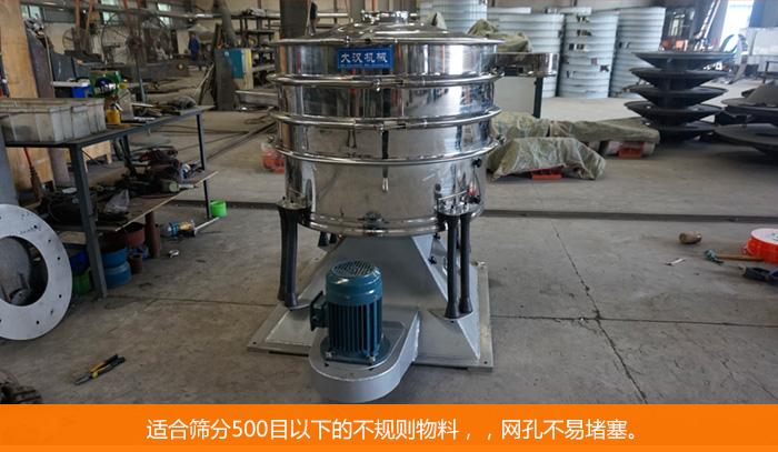 在選擇搖擺篩之前,要了解篩分物料的特性和目數要求,大漢搖擺篩可篩分500目以下物料進行篩分工作,特別適合不規則物料的篩分,網孔不易堵塞。